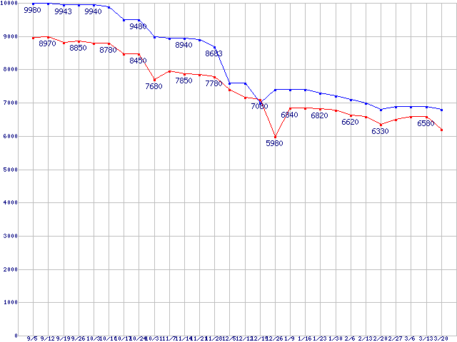 Socket AM2 (HyperTransport,Dual Core)の最安値推移