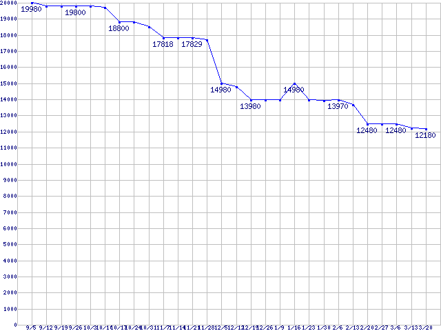 | Socket AM2 (HyperTransport 3.0,Quad Core,TDP 65W)の最安値推移 | | | (2008年9月5日~2009年3月20日) |
