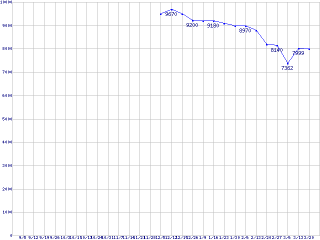 | Socket AM2 (HyperTransport 3.0,Triple Core,TDP 65W)の最安値推移 | | | (2008年9月5日~2009年3月20日) |
