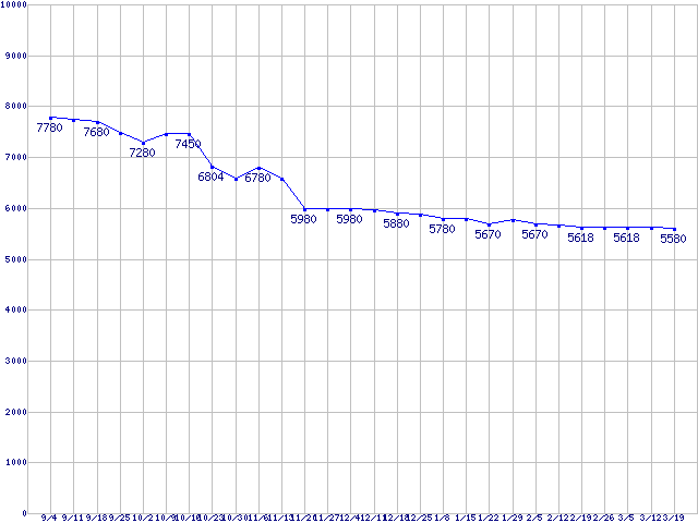 WD Caviar Blue (7200rpm,3Gb/s,16MB)の最安値推移