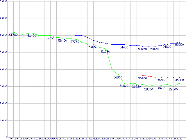 CPU主要製品(最安値3万円~6万円未満)の最安値推移