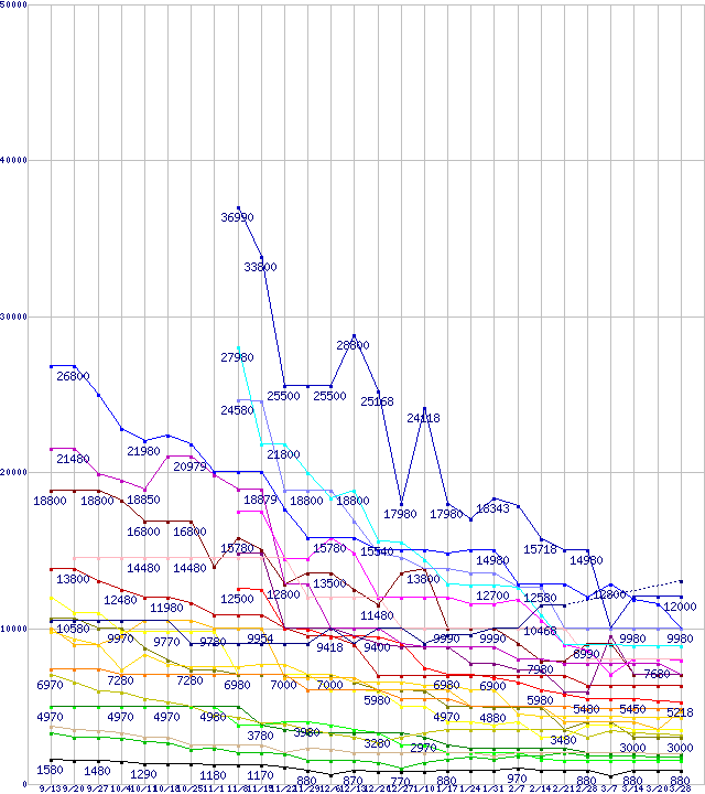 PC3-10600(DDR3-1333) DDR3 SDRAM DIMMの最安値推移