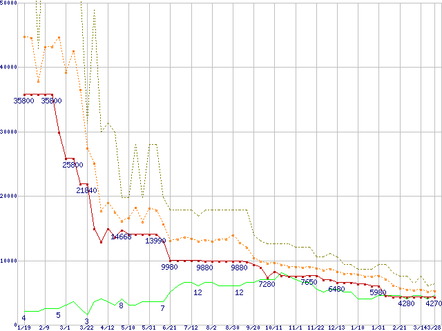PC3-10600(DDR3-1333) DDR3 SDRAM DIMMの最安値推移