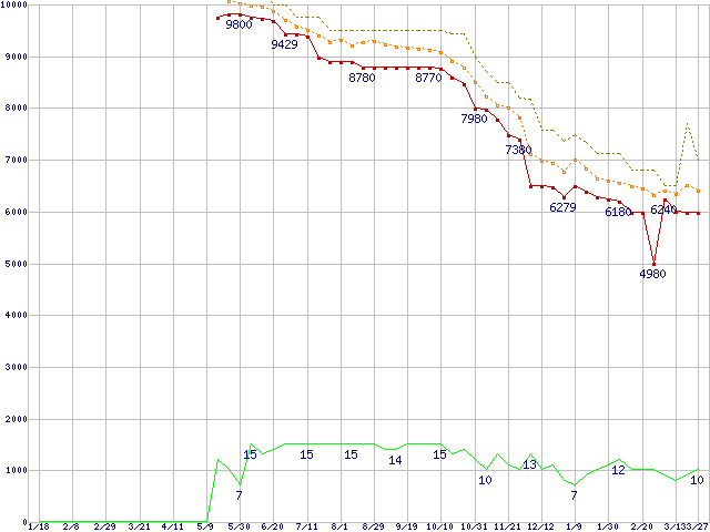 | Athlon X2 4850e (2.5GHz,L2 512KB×2)の価格推移 | | | (2008年1月18日~2009年3月27日) |