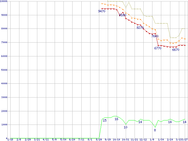 | Pentium Dual-Core E5200 (2.5GHz,L2 2MB)の価格推移 | | | (2008年1月18日~2009年3月27日) |