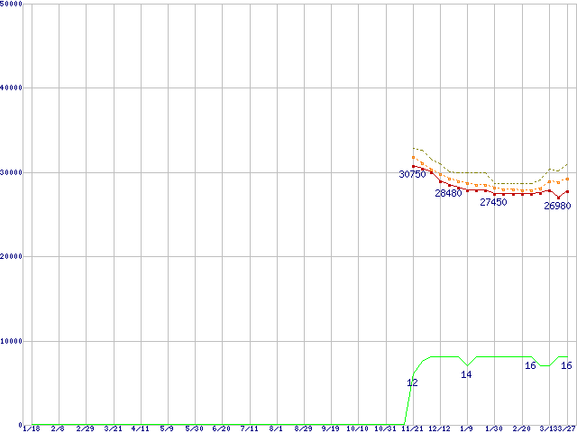 | Core i7-920 (2.66GHz)の価格推移 | | | (2008年1月18日~2009年3月27日) |