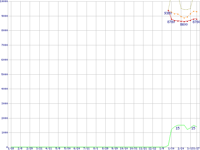 | Pentium Dual-Core E5400 (2.7GHz,L2 2MB)の価格推移 | | | (2008年1月18日~2009年3月27日) |