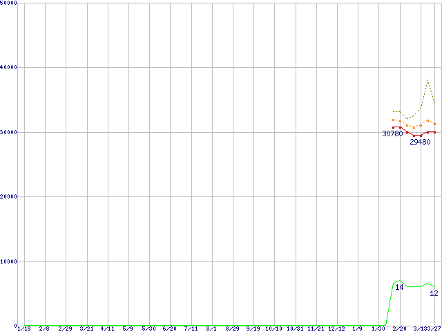 | Core 2 Quad Q9400S (2.66GHz,L2 3MB×2)の価格推移 | | | (2008年1月18日~2009年3月27日) |