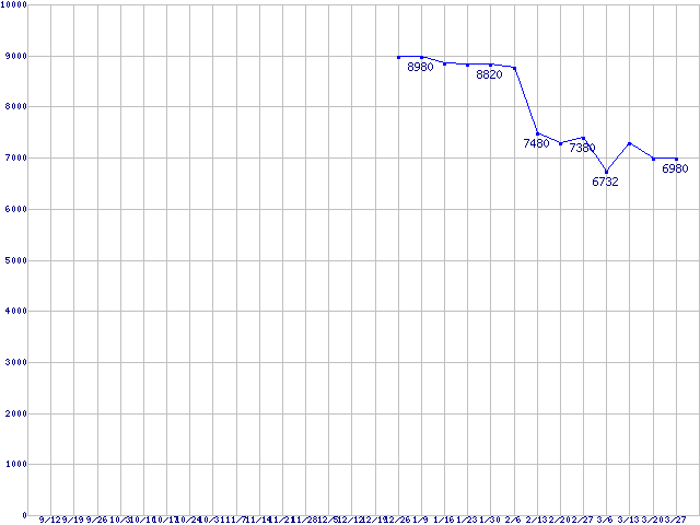 | Socket AM2 (HyperTransport,Dual Core,L3 2MB,TDP 95W)の最安値推移 | | | (2008年9月12日~2009年3月27日) |