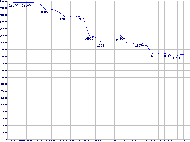 | Socket AM2 (HyperTransport 3.0,Quad Core,TDP 65W)の最安値推移 | | | (2008年9月12日~2009年3月27日) |
