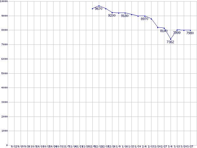 | Socket AM2 (HyperTransport 3.0,Triple Core,TDP 65W)の最安値推移 | | | (2008年9月12日~2009年3月27日) |