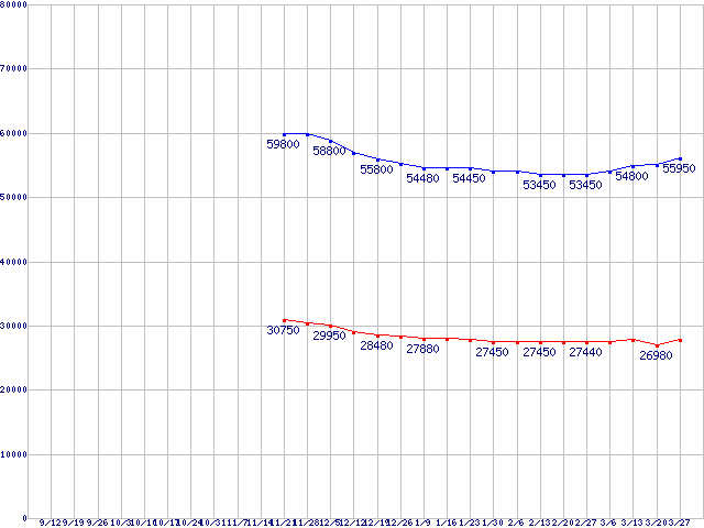 | LGA1366 (QPI 4.8GT/s,L3キャッシュ8MB,Quad Core,Hyper-Threading)の最安値推移 | | | (2008年9月12日~2009年3月27日) |
