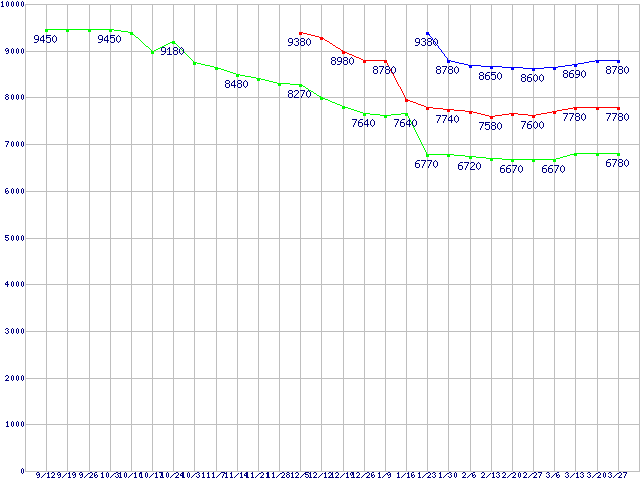 LGA775 (FSB 1066MHz,Dual Core,TDP 65W)の最安値推移