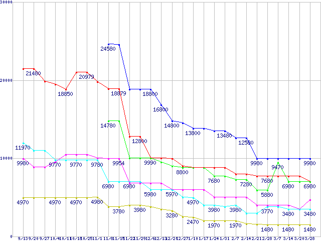 PC3-12800(DDR3-1600) DDR3 SDRAM DIMMの最安値推移