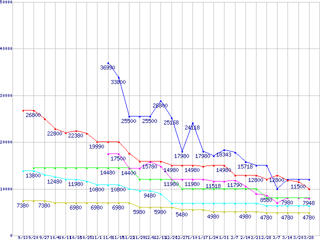 PC2-6400(DDR2-800) DDR2 SDRAM DIMMの最安値推移