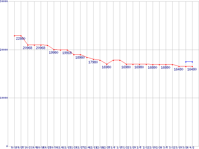 HDD/SSD主要製品(最安値1万5千円~2万円未満)の最安値推移