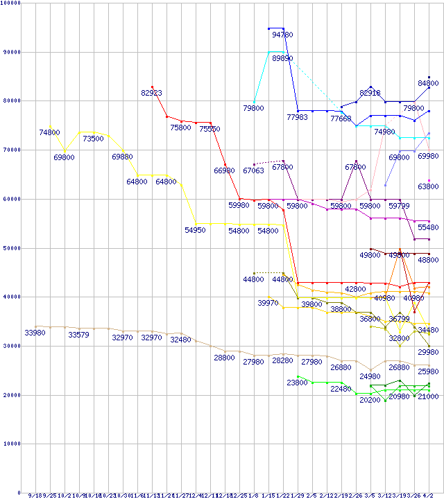 ※製品名をクリックすると個別のグラフを表示します ※点線部は販売店が確認できなかった、または調査データがないことを示します |