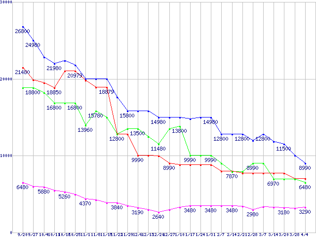 メモリ主要製品の最安値推移
