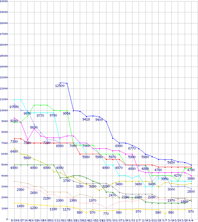 メモリ主要製品(最安値5千円~1万円未満)の最安値推移