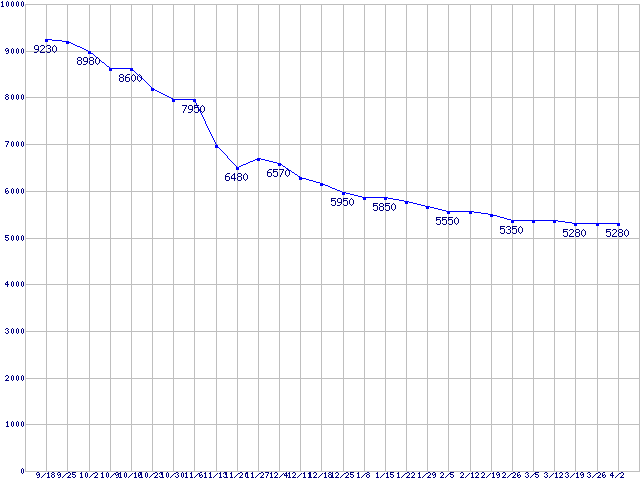 Travelstar 5K500.B (5400rpm,3Gb/s,2.5インチ)の最安値推移