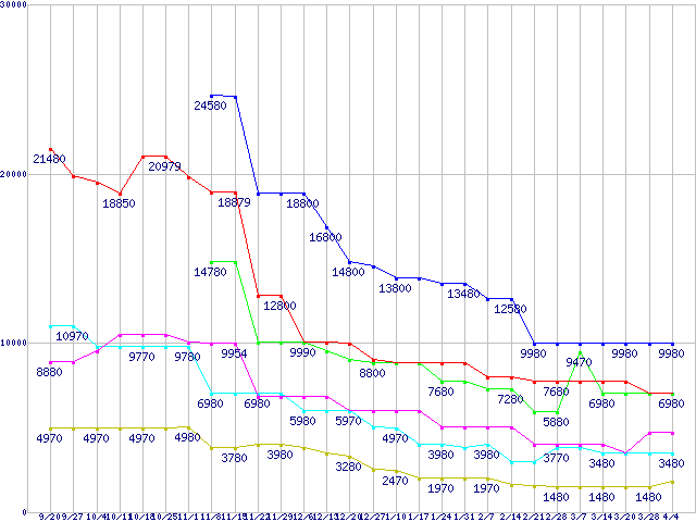 PC3-8500(DDR3-1066) DDR3 SDRAM DIMMの最安値推移