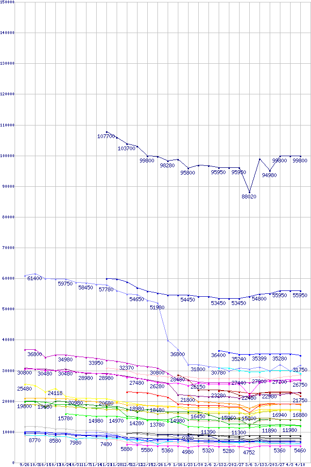 | CPU主要製品の最安値推移 | | | (2008年9月26日~2009年4月10日) |