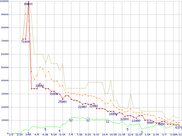 PC3-10600(DDR3-1333) DDR3 SDRAM DIMMの最安値推移