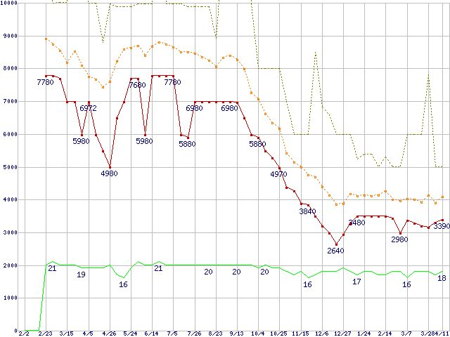 PC2-6400(DDR2-800) DDR2 SDRAM DIMMの最安値推移