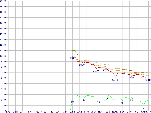 | Athlon X2 5400 Black Edition (2.8GHz,L2 512KB×2)の価格推移 | | | (2008年2月1日~2009年4月10日) |