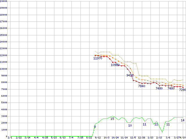 | Athlon X2 6000+ (3.1GHz,L2 512KB×2)の価格推移 | | | (2008年2月1日~2009年4月10日) |