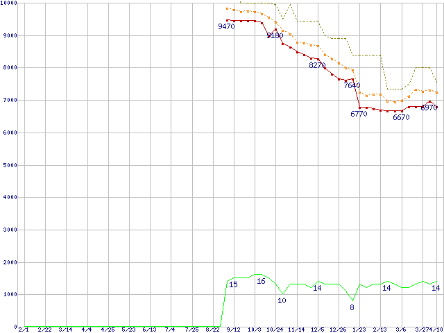 | Pentium Dual-Core E5200 (2.5GHz,L2 2MB)の価格推移 | | | (2008年2月1日~2009年4月10日) |