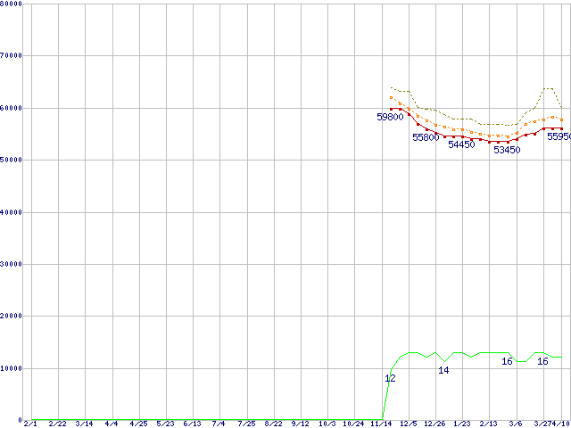 | Core i7-940 (2.93GHz)の価格推移 | | | (2008年2月1日~2009年4月10日) |