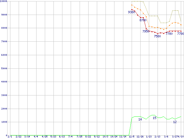 | Pentium Dual-Core E5300 (2.6GHz,L2 2MB)の価格推移 | | | (2008年2月1日~2009年4月10日) |