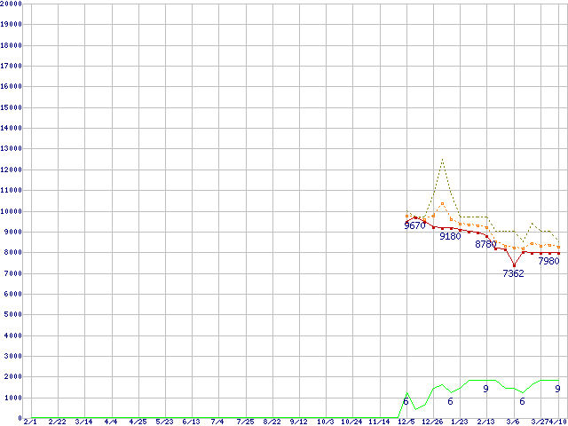 | Phenom X3 8450e (2.1GHz,L2 512KB×3,L3 2MB)の価格推移 | | | (2008年2月1日~2009年4月10日) |