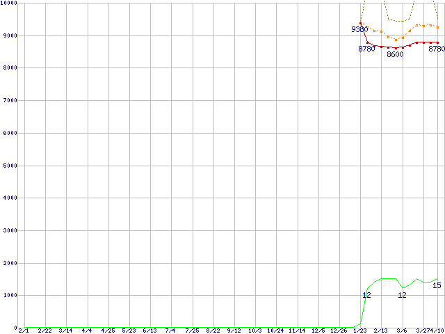 | Pentium Dual-Core E5400 (2.7GHz,L2 2MB)の価格推移 | | | (2008年2月1日~2009年4月10日) |