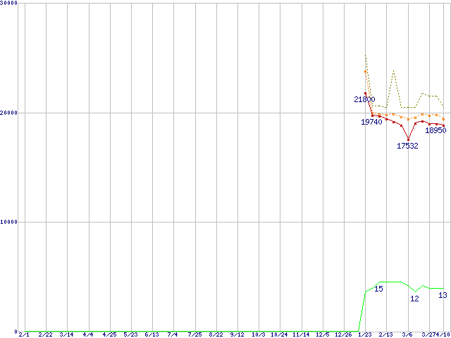 | Phenom II X4 920 (2.8GHz,L2 512KB×4,L3 6MB)の価格推移 | | | (2008年2月1日~2009年4月10日) |