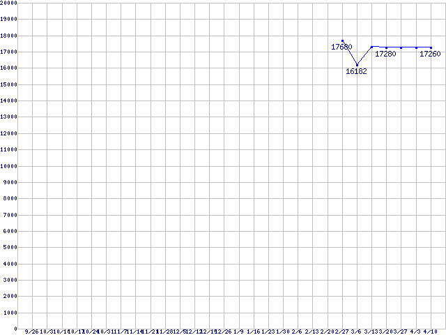| Socket AM3 (HyperTransport 3.0,Quad Core Core,TDP 95W)の最安値推移 | | | (2008年9月26日~2009年4月10日) |