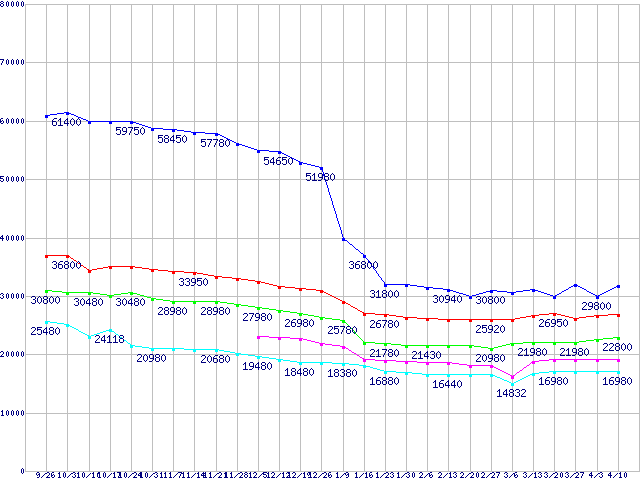 LGA775 (FSB 1333MHz,Quad Core,TDP 65W)の最安値推移