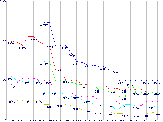 PC3-8500(DDR3-1066) DDR3 SDRAM DIMMの最安値推移