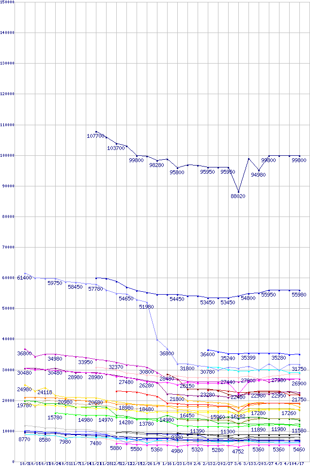 | CPU主要製品の最安値推移 | | | (2008年10月3日~2009年4月17日) |