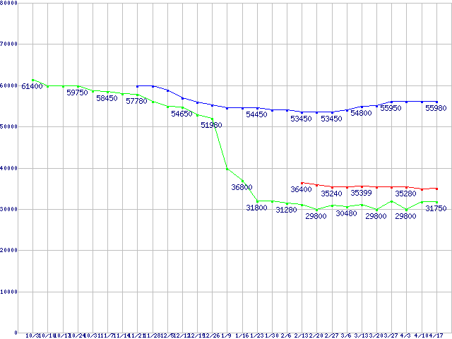 CPU主要製品(最安値3万円~6万円未満)の最安値推移