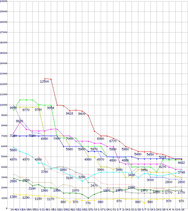 メモリ主要製品(最安値5千円~1万円未満)の最安値推移