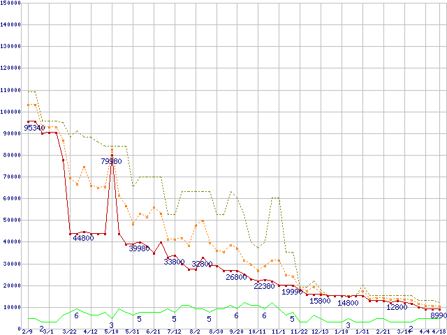 PC3-12800(DDR3-1600) DDR3 SDRAM DIMMの最安値推移