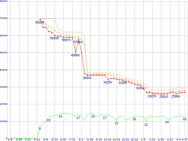 | Core 2 Quad Q9550 (2.83GHz,L2 6MB×2)の価格推移 | | | (2008年2月8日~2009年4月17日) |