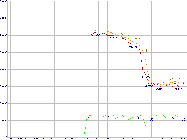 | Core 2 Quad Q9650 (3.00GHz,L2 6MB×2)の価格推移 | | | (2008年2月8日~2009年4月17日) |