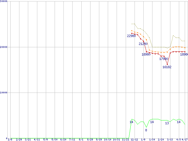 | Core 2 Quad Q8300 (2.5GHz,L2 2MB×2)の価格推移 | | | (2008年2月8日~2009年4月17日) |