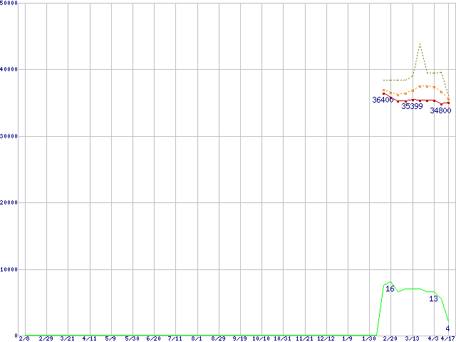 | Core 2 Quad Q9550S (2.83GHz,L2 6MB×2)の価格推移 | | | (2008年2月8日~2009年4月17日) |