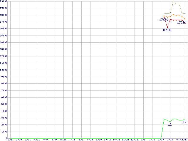 | Phenom II X4 810 (2.6GHz,L2 512KB×4,L3 4MB)の価格推移 | | | (2008年2月8日~2009年4月17日) |