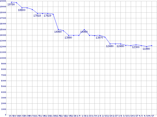 | Socket AM2 (HyperTransport 3.0,Quad Core,TDP 65W)の最安値推移 | | | (2008年10月3日~2009年4月17日) |