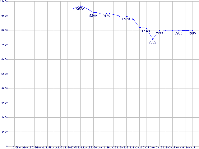 | Socket AM2 (HyperTransport 3.0,Triple Core,TDP 65W)の最安値推移 | | | (2008年10月3日~2009年4月17日) |
